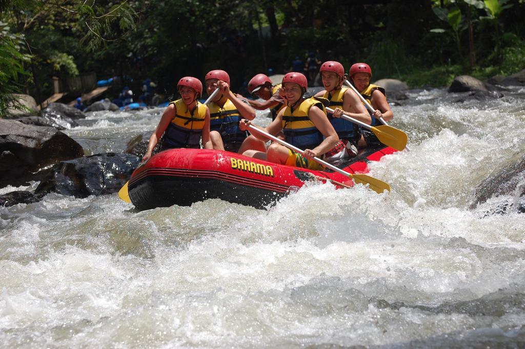 Bali Bahama Rafting Located in Bongkasa Village “Ayung River” Badung regency, approx 20 minutes from Denpasar. Along the river will encounter lush of green scenery, rain forest, wild animals, classified rapids of II and III. Come and feel the roar of the river beneath your white water rafting
