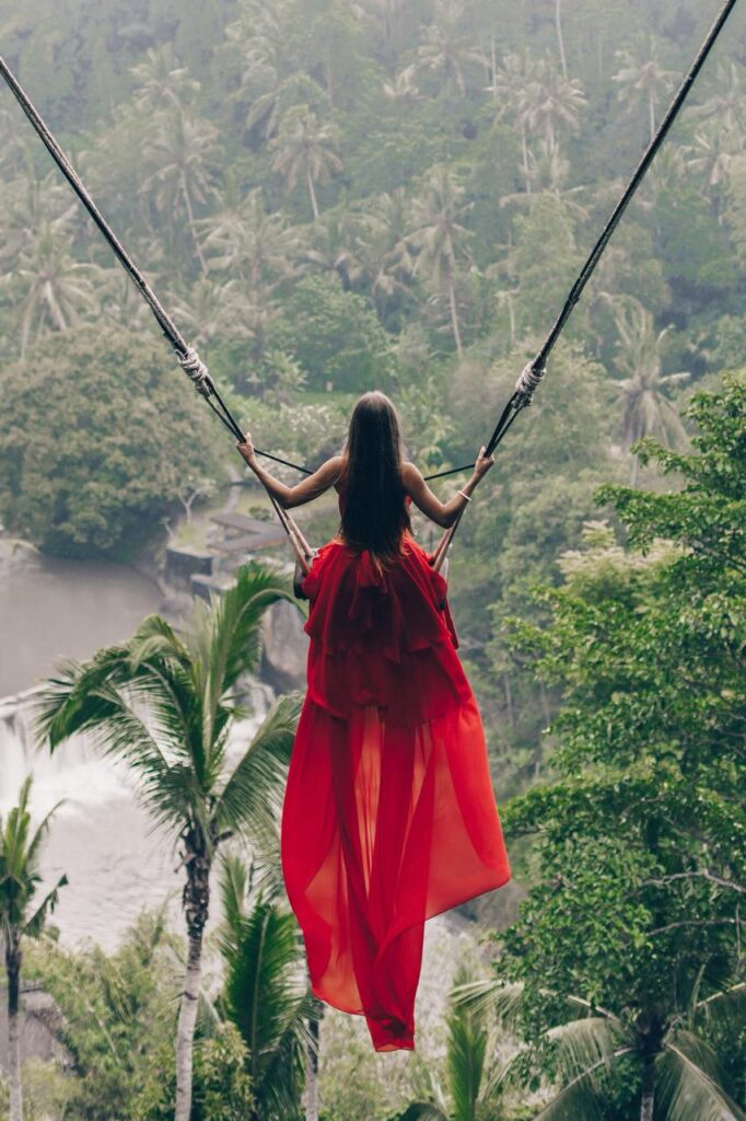 Bali is also famous for its giant swing ride which offers the experience of flying over the jungle. Once jacked up, you’ll float and enjoy views of the beautiful valley below. Swinging on the green expanse of trees provides a relaxing sensation as well as an adrenaline rush. This activity is often used as a charming selfie spot.